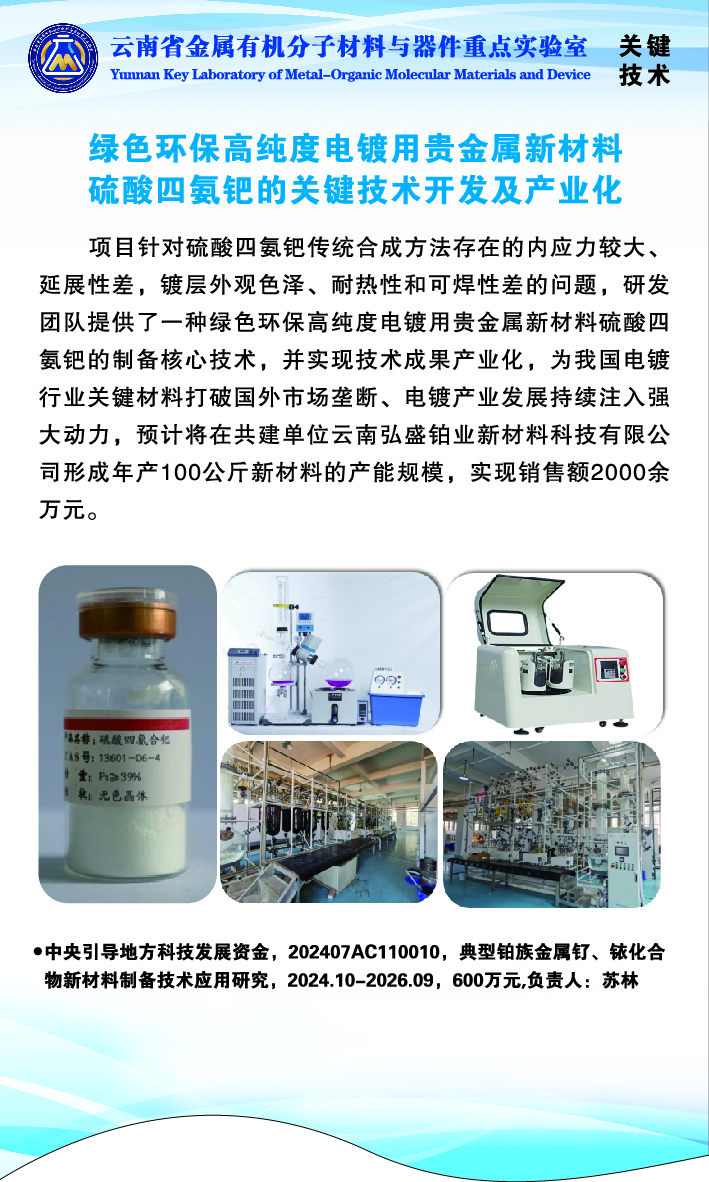 绿色环保高纯度电镀用贵金属新材料硫酸四氨钯的关键技术开发及产业化